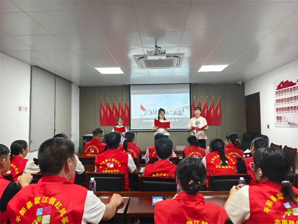“鳌江之歌”观映:全体人员共同观看“鳌江之歌”视频,在熟悉的旋律与家乡风貌中,凝聚起热爱故土、服务家乡的情感共鸣;