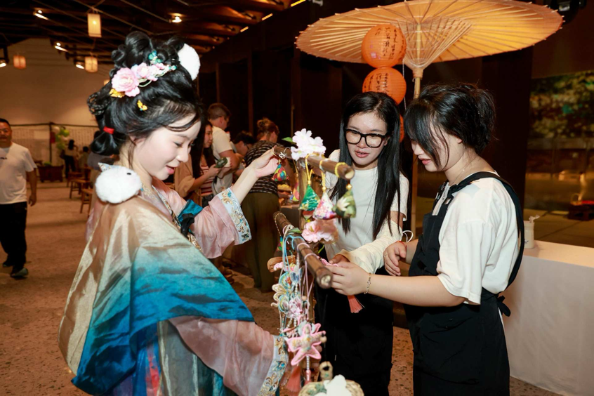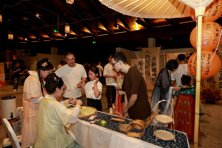 夜幕初垂,身着襦裙长衫的人才们走入精心打造的“宋代集市”。传统新玩、潮趣互动、手作精品、美食轻享等特色摊位前人头攒动,欢声笑语中,现代人才与千年宋韵展开深度对话。
