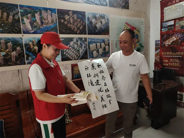“用书法这种传统艺术形式宣传垃圾分类,既新颖又有意义,看着这些作品,我对分类知识记得更牢了。”市民陈女士拿着刚收到的书法作品说道。