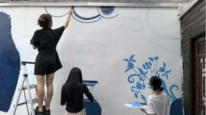 青年驻村队伍进行墙绘创作漫步鸣山村,色彩鲜活的墙绘勾勒出乡村烟火气,融入非遗元素的文创产品尽显本土特色。这些“颜值”与“内涵”兼具的变化,来自“高校驻村计划”的实践。该村联动全国14所高校,仅2024年就邀请12支专业团队驻村创作,完成650平方米的乡村墙绘改造,设计150余款特色文创产品,并为村庄量身定制多套运营方案。相关成果通过线上传播,全网曝光量超500万次,让“藏于乡野”的鸣山资源走进大众视野,实现青年创意与乡村资源的深度耦合。