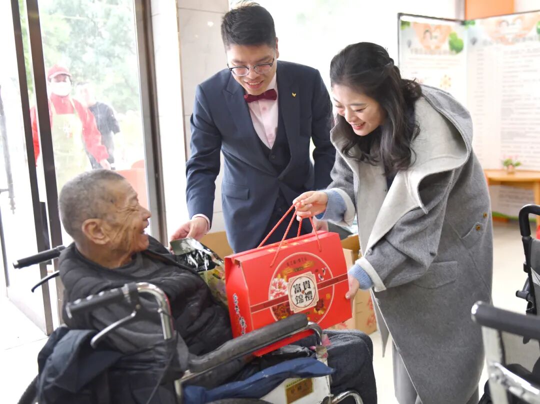 活动现场热闹非凡、喜气洋洋。新郎邱杭、新娘林蓓蓓与义工们分工协作,一方面为老人们送上慰问品,还亲手煮制莲子汤圆,一碗碗热腾腾的汤圆递到老人手中,伴随着“新婚快乐”“祝你们长长久久”的真挚祝福;另一方面,义工理发师专门为有需求的老人修剪头发,娴熟的手艺让老人们精神面貌焕然一新,现场不时传来阵阵感谢声。新人与老人的笑容交织在一起,构成了一幅温馨动人的画面,在场群众也纷纷向新人表达美好祝愿。