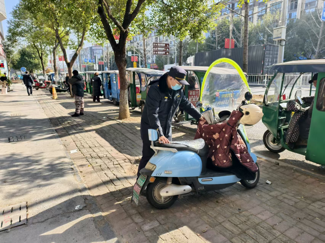 在整治车辆停放秩序时,中队采取“疏堵结合”方式,对主次干道、商业街区、学校周边等重点区域开展拉网式巡查,引导居民将电瓶车规范停放至指定车位。行动累计出动执法人员128人次,劝离并规范违停车辆253辆,对屡劝不改的车辆依法张贴《违法停车告知单》36份。整治后,重点路段高峰时段车辆通行效率提升达50%,秩序改善效果显著。