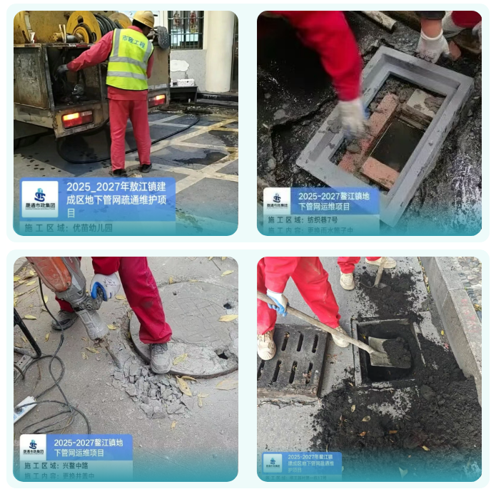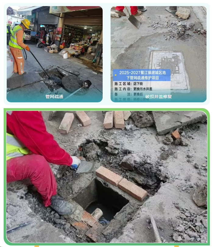 行动期间,工作人员对辖区排水管网进行了系统排查与疏通。在园林路255号后门、幼苗幼儿园门前及柳王新村等易堵节点,采用专业设备进行清淤作业,有效恢复管网排水能力,为雨季畅通打下基础。同时,针对居民反映的店下街、东河小区、兴鳌中路等路段井盖破损、移位等“马路陷阱”问题,市政园林岗快速组织力量处置,及时修复并更换了一批存在安全隐患的污水井盖,切实保障了路面平整与市民出行安全。