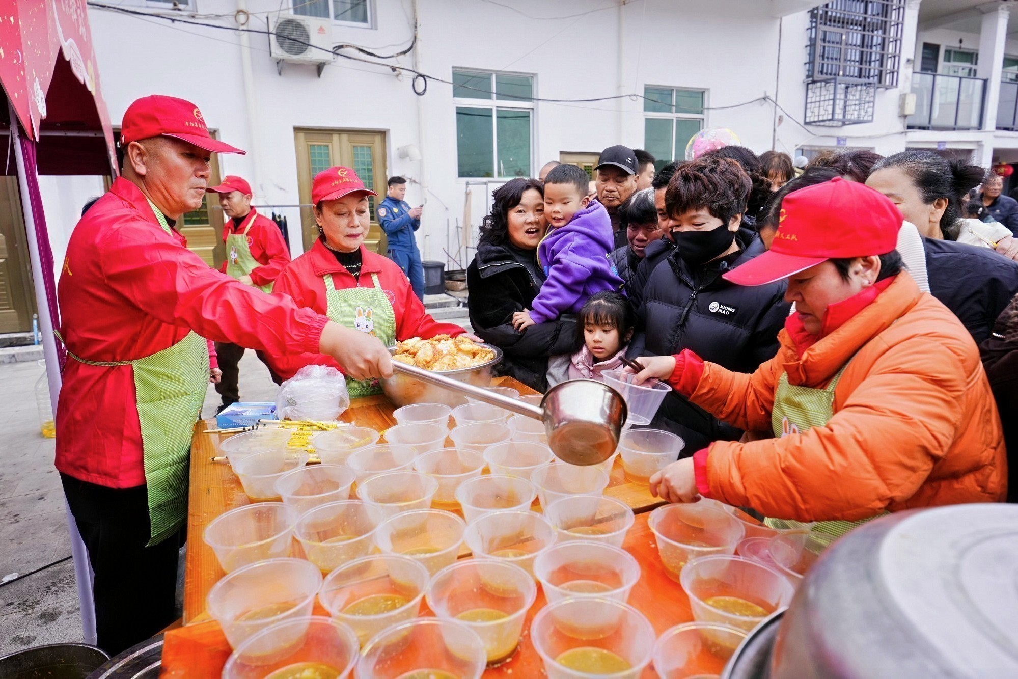 “出锅喽!大家不要急,排好队!”小院内,等候姜酒面的队伍早已排成长龙。这道寓意吉祥的平阳特色美食,承载着许多人的家乡记忆。“听说下午4点有面吃,我们提前就来排队了。”村民鲍女士说道。随着一碗碗香气十足的面条出锅,大家有序领取。“就像一家人吃大锅饭,太有过年的氛围了。”78岁的林大妈一边吃着面条,一边乐呵呵地说道。