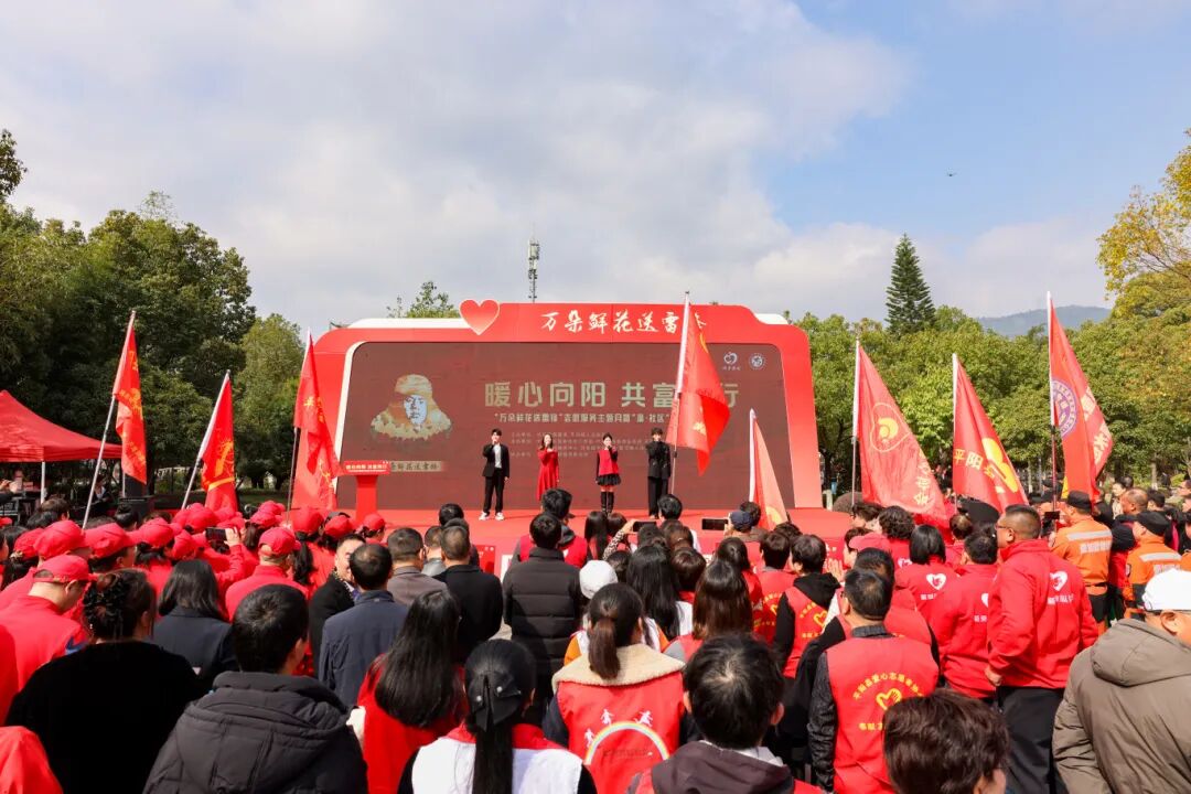暖心向阳·共富同行。3月6日,由中共平阳县委、平阳县人民政府主办,县委社会工作部、县委宣传部、县精神文明建设指导中心、县融媒体中心、团县委、鳌江镇政府联合承办的以“暖心向阳·共富同行”为主题的“万朵鲜花送雷锋”志愿服务主题月暨“温”社区服务月启动仪式在鳌江公园举行。