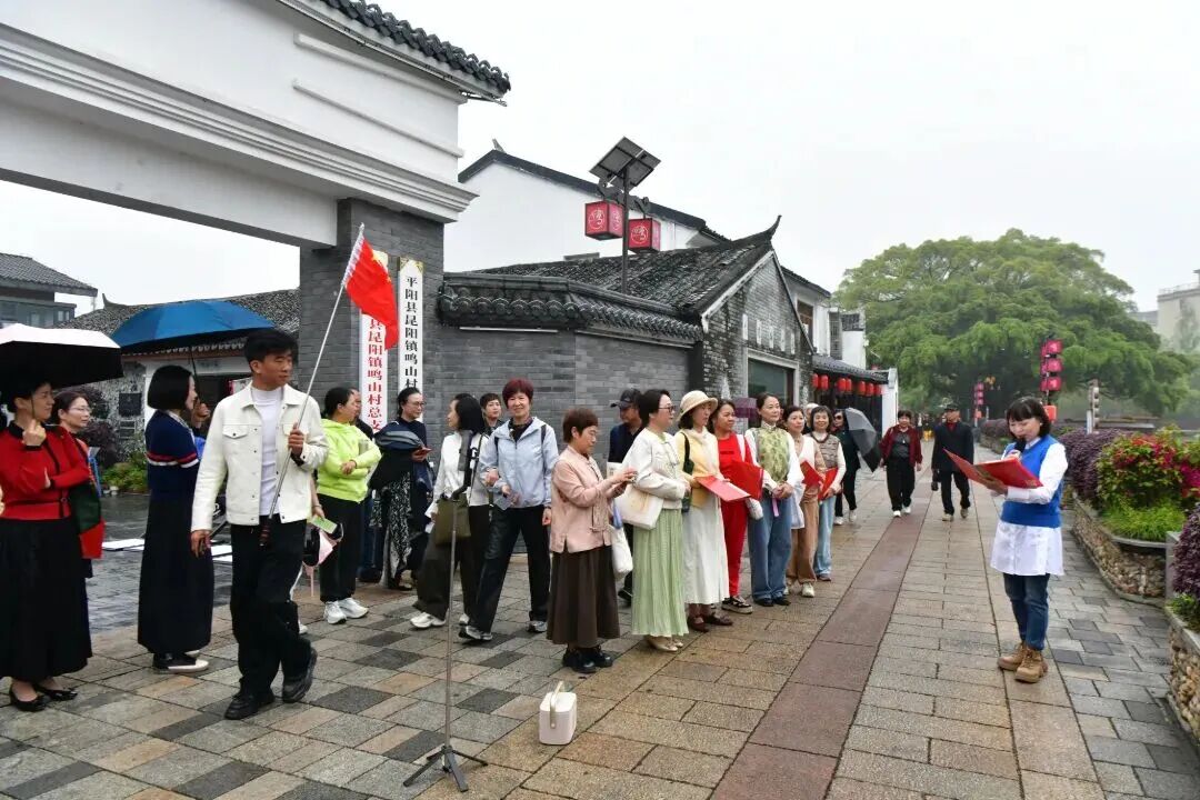 4月15日,第十五届中国国际园林博览会在温州正式开幕,作为平阳分会场核心博览点的鸣山村,迎来一场别具特色的春日文化活动。昆阳镇老年学校2026年朗诵班学员走出课堂,在千年古村的秀美风光中开展户外朗诵课,以声声诵读传递春日美好,让园博生态之美与古村人文底蕴双向交融、相得益彰。
